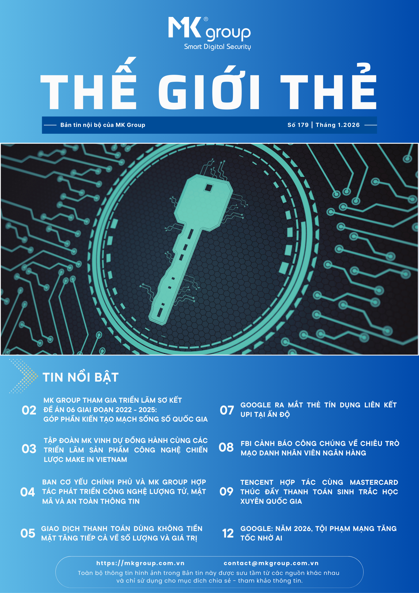 26/01/2026 16:28Trân trọng kính mời Quý độc giả đón đọc bản tin Thế Giới Thẻ điện tử MK Group số 179 với những tin tức mới và hữu ích trong ngành công nghiệp thẻ thông minh, xác thực bảo mật cũng như các thông tin về xu hướng công nghệ khác.