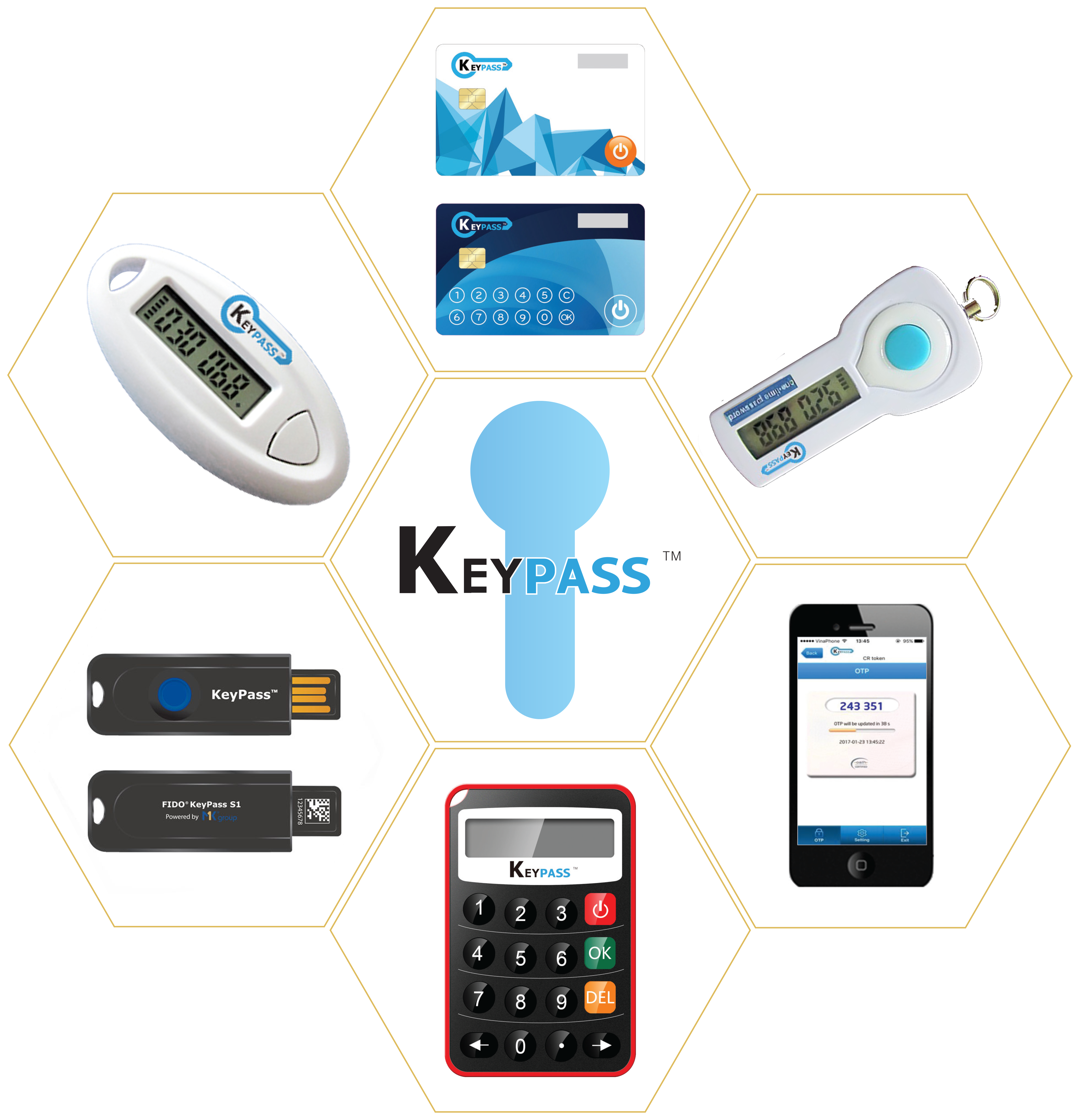 Giải pháp KeyPass™ OTP của MK Group cung cấp đấy đủ tất cả các phương thức xác thực hiện có trên thị trường trong nước và quốc tế để tạo ra Mật khẩu sử dụng một lần dành cho các giao dịch trực tuyến như Hard Token, Thẻ Thông minh (Smartcard), Mobile SMS, Mobile SIM, Thẻ EMV, thẻ Cào (Scratch-Off-Card), và đặc biệt là phương thức Mobile Soft Token - ứng dụng chạy trên smartphone. Tùy theo yêu cầu về mức độ bảo mật và mức độ tiện dụng, người dùng có thể đồng thời sử dụng một hay nhiều phương thức xác thực nói trên để nâng cao khả năng đảm bảo an toàn cho hệ thống hoặc tài khoản của mình.
