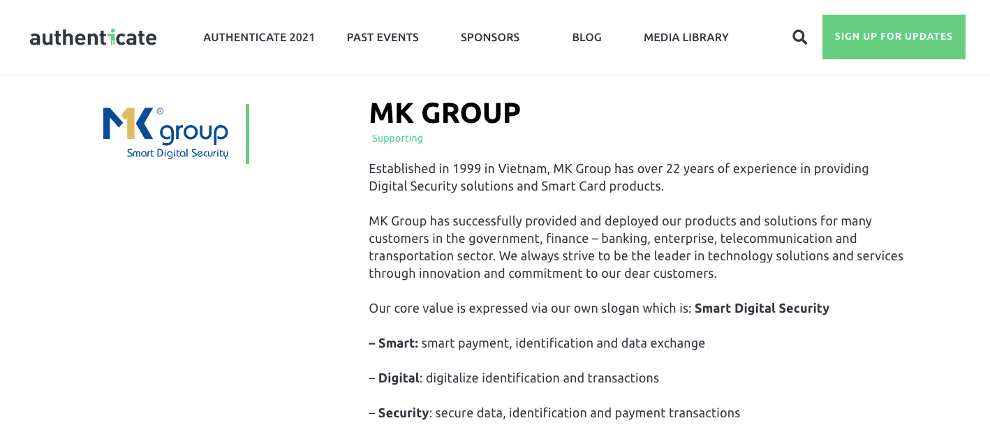 Trong khuôn khổ sự kiện này, MK Group đã tham gia đồng hành với FIDO Alliance với cương vị là nhà tài trợ đóng góp cho sự kiện. Hiện MK Group cũng là doanh nghiệp công nghệ Việt sở hữu và sản xuất hai thiết bị Khóa xác thực bảo mật theo chuẩn FIDO gồm Khóa xác thực FIDO® KeyPass S1 đạt chuẩn FIDO U2F / hỗ trợ chuẩn FIDO2 – đây là thiết bị khóa xác thực đầu tiên của Việt Nam đạt chuẩn FIDO vào ngày 08/08/2018; và Khóa xác thực FIDO® KeyPass S2 đạt chuẩn FIDO2.