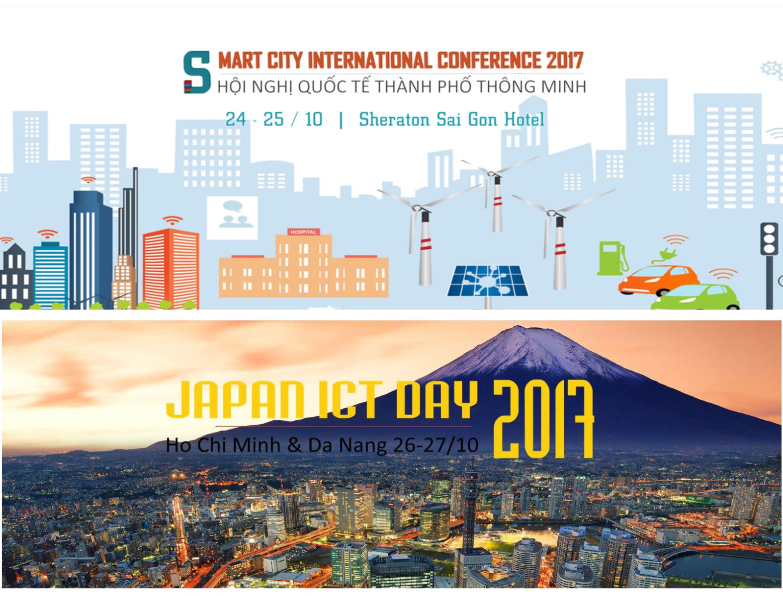 16/10/2017 00:00Ngày 25 – 26/10/2017, tại Khách sạn Sheraton, Tp. Hồ Chí Minh sẽ diễn ra hai sự kiện quan trọng của ngành CNTT Việt Nam gồm Hội nghị quốc tế về đô thị thông minh và Ngày CNTT Nhật Bản 2017. Hai sự kiện trên do Bộ Khoa học công nghệ, Hiệp hội Phần mề