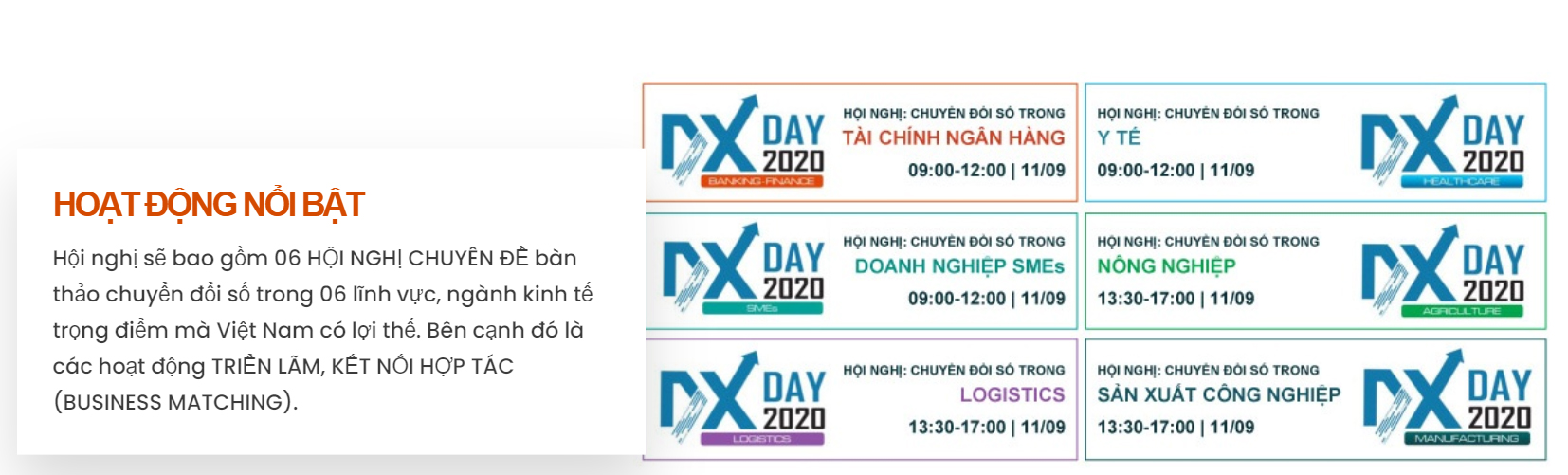 Theo Ban tổ chức Trong lần đầu tiên tổ chức, DX Day Vietnam 2020 sẽ tập trung vào những câu chuyện "người thật, việc thật". Các chuyên gia sẽ chia sẻ bài học, kinh nghiệm và giới thiệu những giải pháp đã thể hiện tính hiệu quả khi được ứng dụng, triển khai trên thực tế.