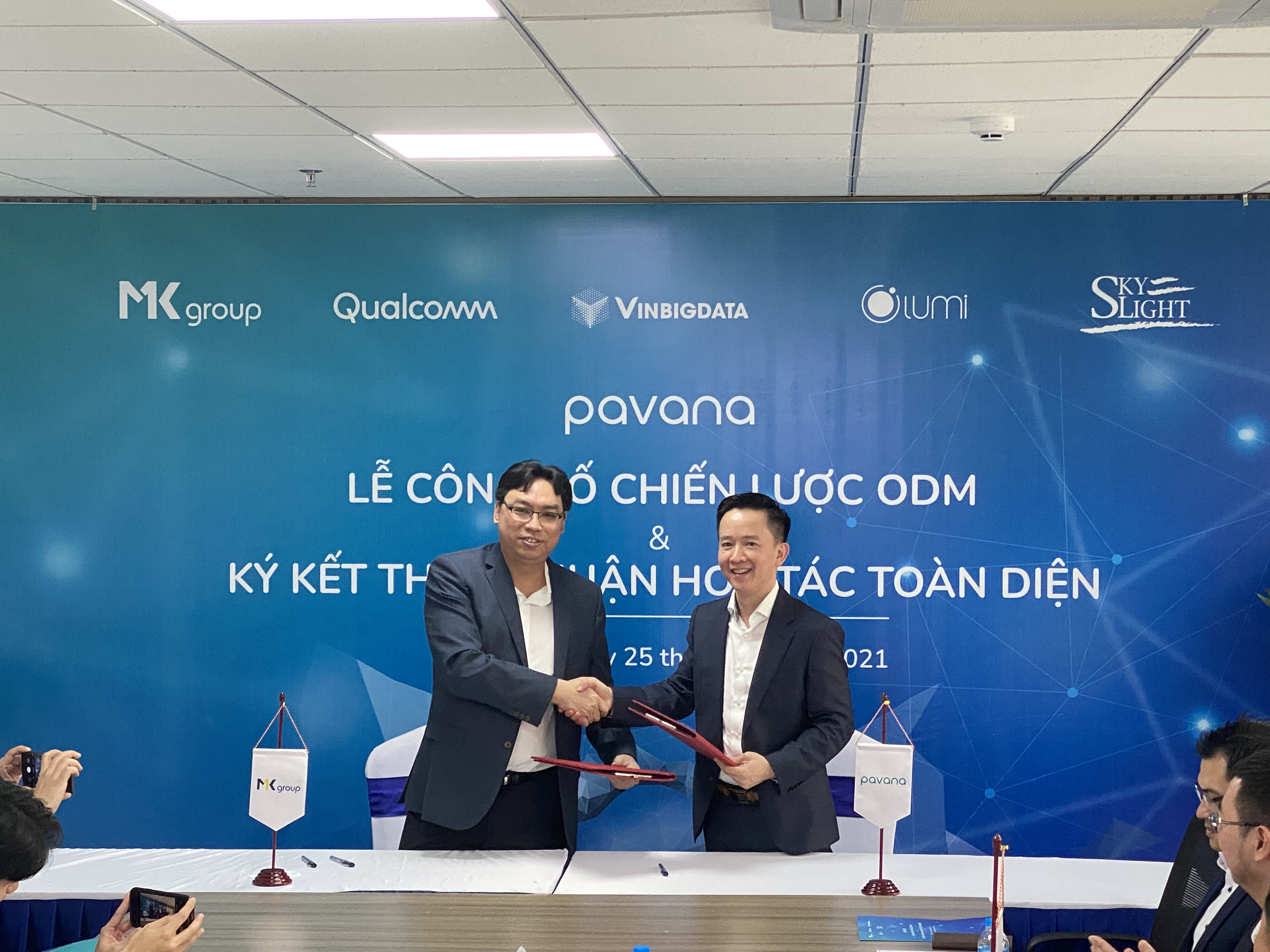 Trong buổi công bố chiến lược, MK Group đã ký kết hợp tác với Pavana theo mô hình nhà sản xuất phát triển chung (JDM) để, sản xuất, phát triển và đưa ra thị trường dòng sản phẩm AI camera cho thị trường Việt Nam. MK Group và Pavana sẽ hợp tác phát triển sản phẩm camera chuyên dụng, tích hợp công nghệ sinh trắc học và bảo mật do MK Group cung cấp, tạo ra sản phẩm hướng tới nhóm khách hàng doanh nghiệp và Chính phủ. Với đội ngũ kỹ sư có trình độ chuyên môn cao và dày kinh nghiệm, hai bên sẽ cùng nhau nghiên cứu và phát triển sản phẩm camera thông minh chất lượng cao “Make in Vietnam” với các ứng dụng thiết thực cho các cơ quan, tổ chức doanh nghiệp, dân sự trong nước và quốc tế.